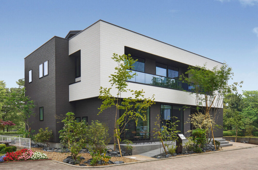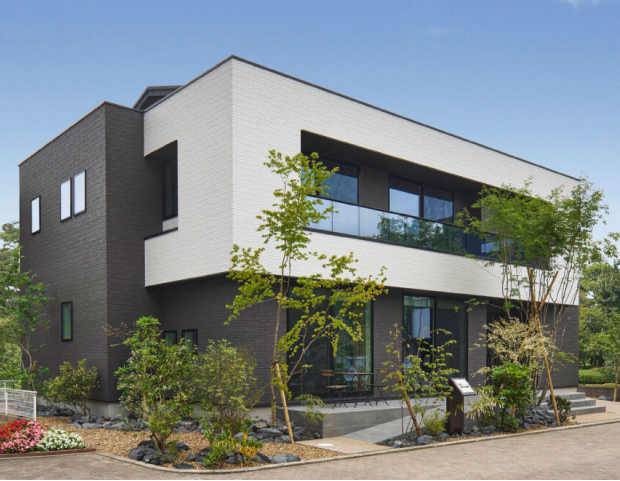 TEL:06-6115-9396オーバーハングした2階部分にアクセント外壁を用いたモノトーンの「花博第二展示場」は、バーチカルスペース/タテを活用することでハーフ収納やスキップフロア、ロフト、小屋裏収納といった多彩な空間を創り出し、スタディコーナーやシアターコーナーなど、その使い方も提案。1階では、キッチンからパントリー、家事コーナー、ファミリークローゼット、洗面所やランドリーを通ってキッチンに戻る回遊動線が、暮らしやすさを感じさせます。LDKは、間接照明を採り入れた照明設計も注目ポイントです。