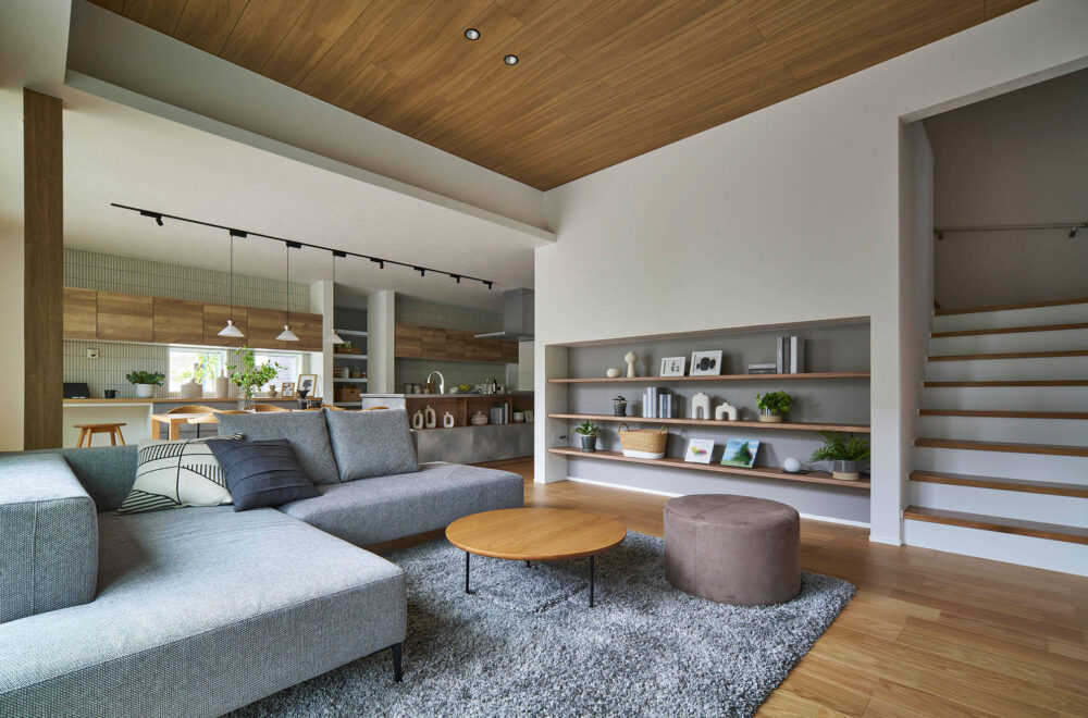 家族が自然と集まるリビングは、