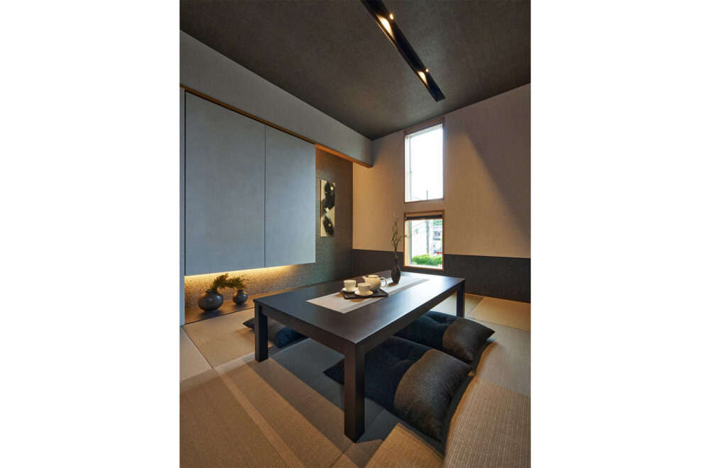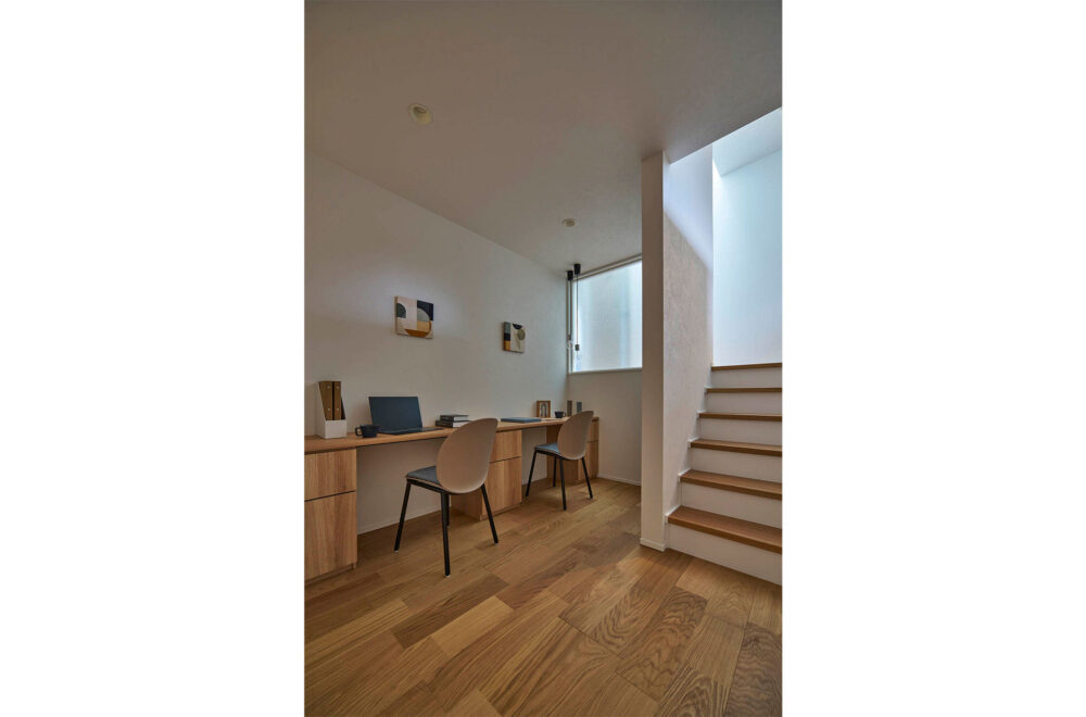 なんば住宅博 TEL:06-6536-8282ホワイト×ベージュという優しい色使いの「なんば展示場」は、1階に親世帯、2階、3階に子世帯が住まうことを想定した都市型2世帯住宅。1階は、寝室の近くに水回りを設けるなど、親世帯の将来にも配慮したプランになっています。2階のLDKは、吹抜を採用して開放感を創出。1.5階の和室や2.5階のリモートワークコーナー、3階の寝室から上がるシアタースペースなど、縦空間を活用して創り出したスキップフロアも多彩です。