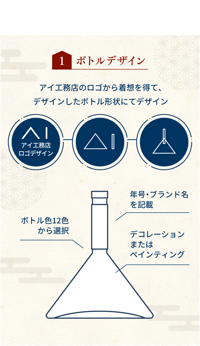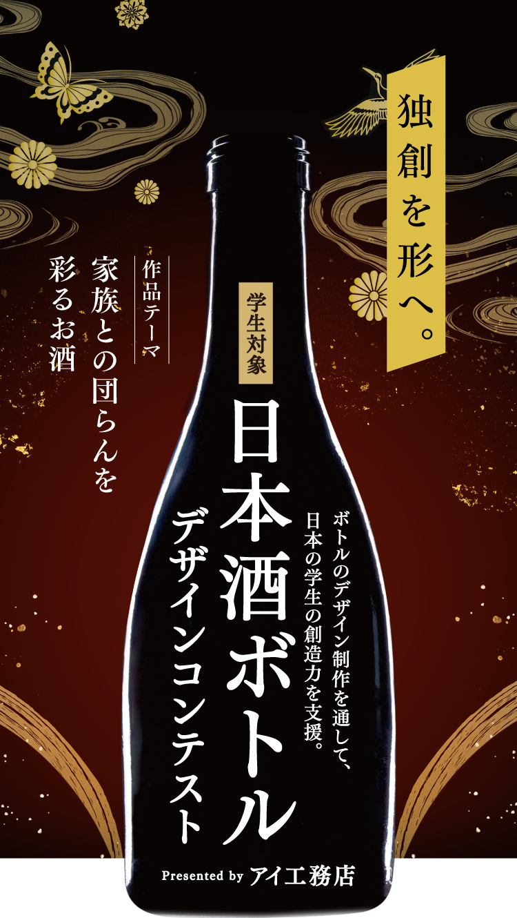 応募方法 | 本サイト応募フォームよりご応募いただくか、 もしくは郵送にて事務局にデータ送付 【郵送応募の場合の送付先】 〒542-0085 大阪市中央区心斎橋筋1-9-17 エトワール心斎橋9F アイ工務店 日本酒ボトルデザイン係 ※12月15日必着 ※作品は著作権その他第三者の権利を侵害していない未発表作品に限ります。 ※AI生成物は応募不可となります。 ※応募は一人1点に限ります。 |
