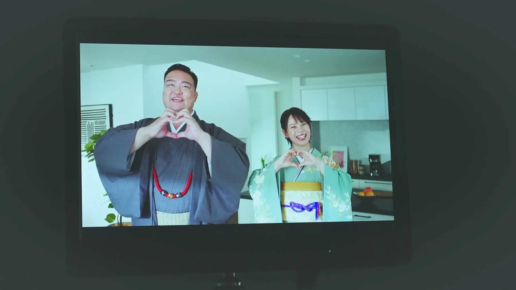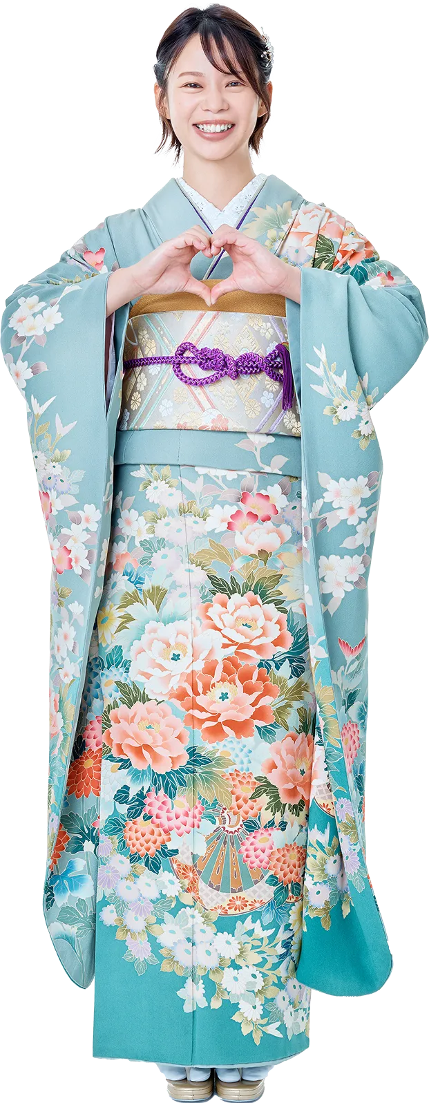 着物姿で仲良くハートポーズ。