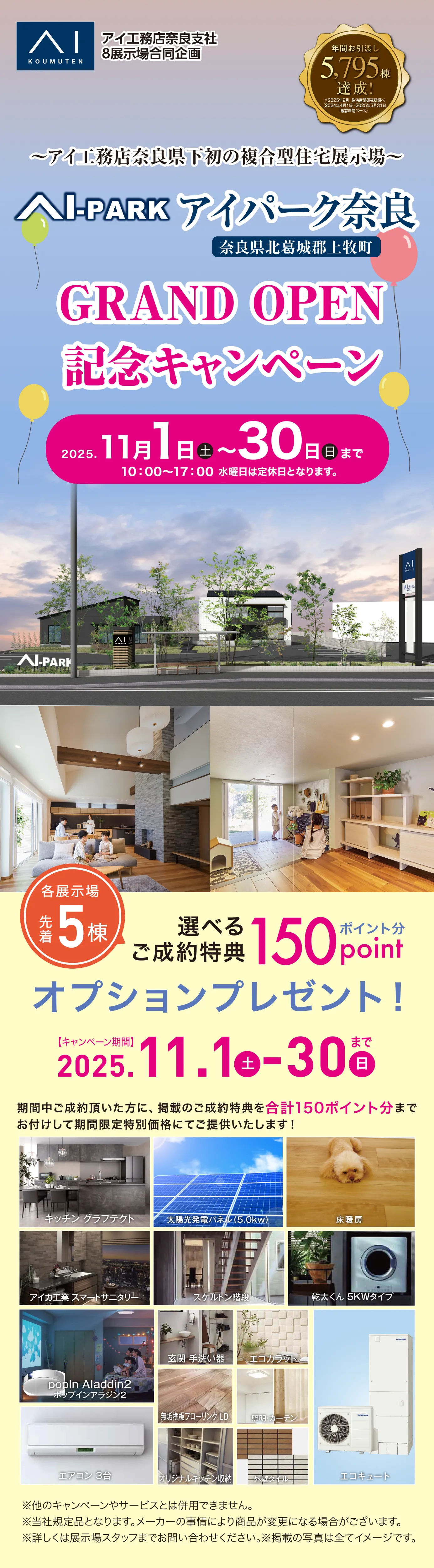 アイ工務店は、地盤にも大きな安心を保証します。不同沈下に起因する建物の損害に対する現状復帰のための補修費用、並びに補修期間中の仮住居費用等をお引渡し日より20年間、保証内容に合わせて1事故につき最大2000万円(保険期間を通じて最大5000万円)まで保証。見えない地面の中まで、しっかり保証します。