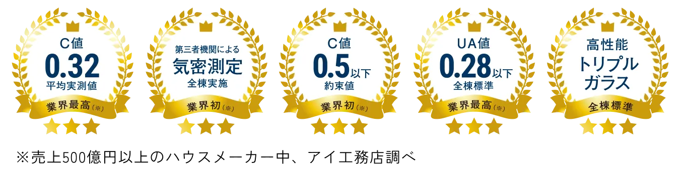 さらに平均実測値は0.32と国内トップクラスの性能です。 隙間から出入りする熱や湿気を抑えることで、快適性はもちろん、カビや構造体の劣化も防止します。