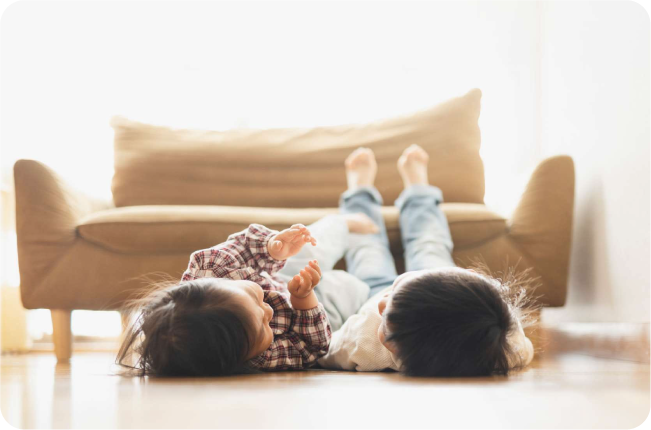 平屋にスキップフロア(1.5階)を導入することで、限られたスペースの中で大容量の収納スペースや子どもたちのプレイルーム、趣味の部屋など多彩にお使いいただける自由空間や、あこがれの吹抜け空間を実現します。