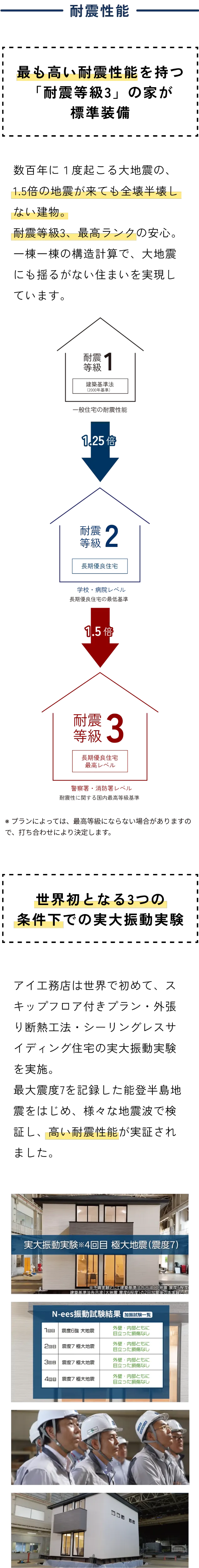 アイ工務店の住まいは、安定性の高いベタ基礎や揺れに強い耐力壁を採用。