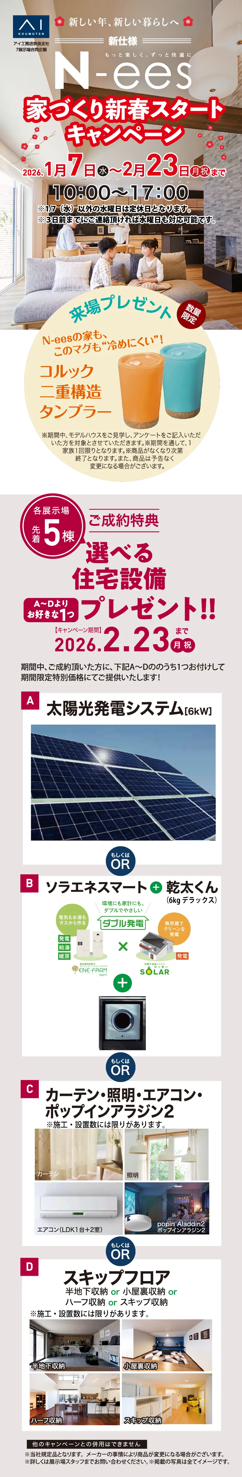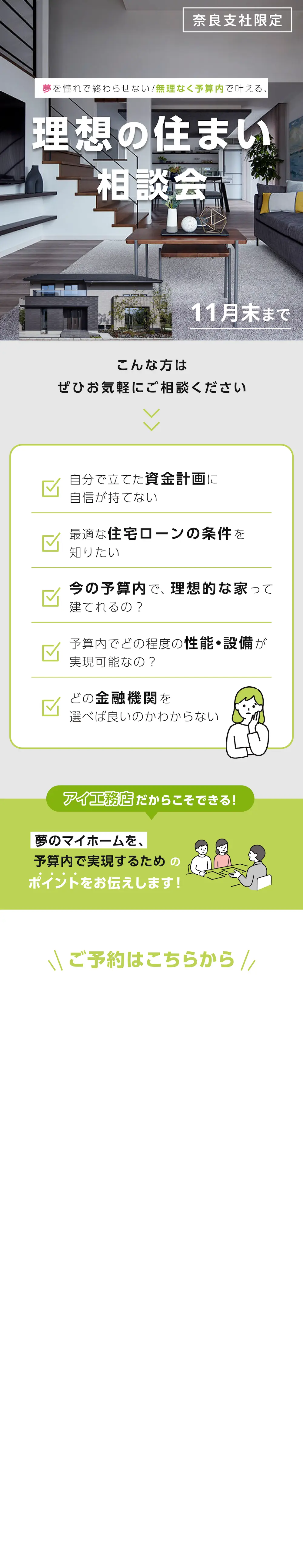 アイ工務店は、地盤にも大きな安心を保証します。不同沈下に起因する建物の損害に対する現状復帰のための補修費用、並びに補修期間中の仮住居費用等をお引渡し日より20年間、保証内容に合わせて1事故につき最大2000万円(保険期間を通じて最大5000万円)まで保証。見えない地面の中まで、しっかり保証します。